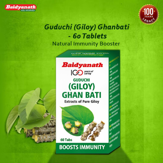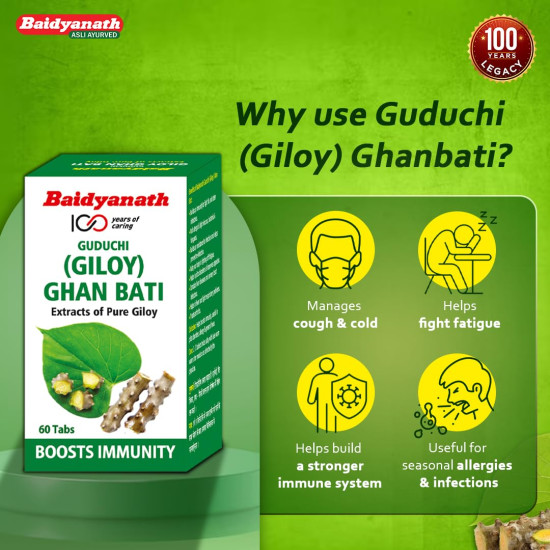 Baidyanath Guduchi (Giloy) Ghanbati - 60 Tablets (pack of 2) - Helps Boost Immunity