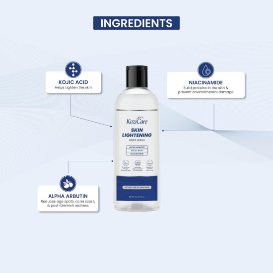 Kozicare Soap Skin Lightening Body Wash Gel | Alpha Arbutin, Niacinamide & Kojic Acid Body Wash | Helps Reduces Pigmentation, Dark Spots & Uneven Skin Tone | Body Wash for Men & Women - 300 Ml